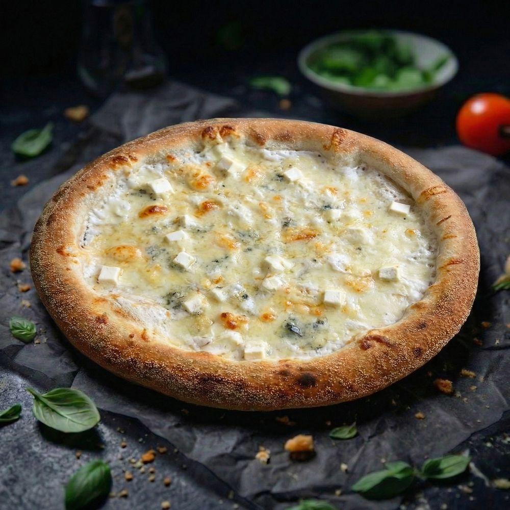соус белый "Крем Чиз", сыр моцарелла, сыр скаморца, сыр Адыгейский сливочный, сыр горгонзола, трюфельное масло